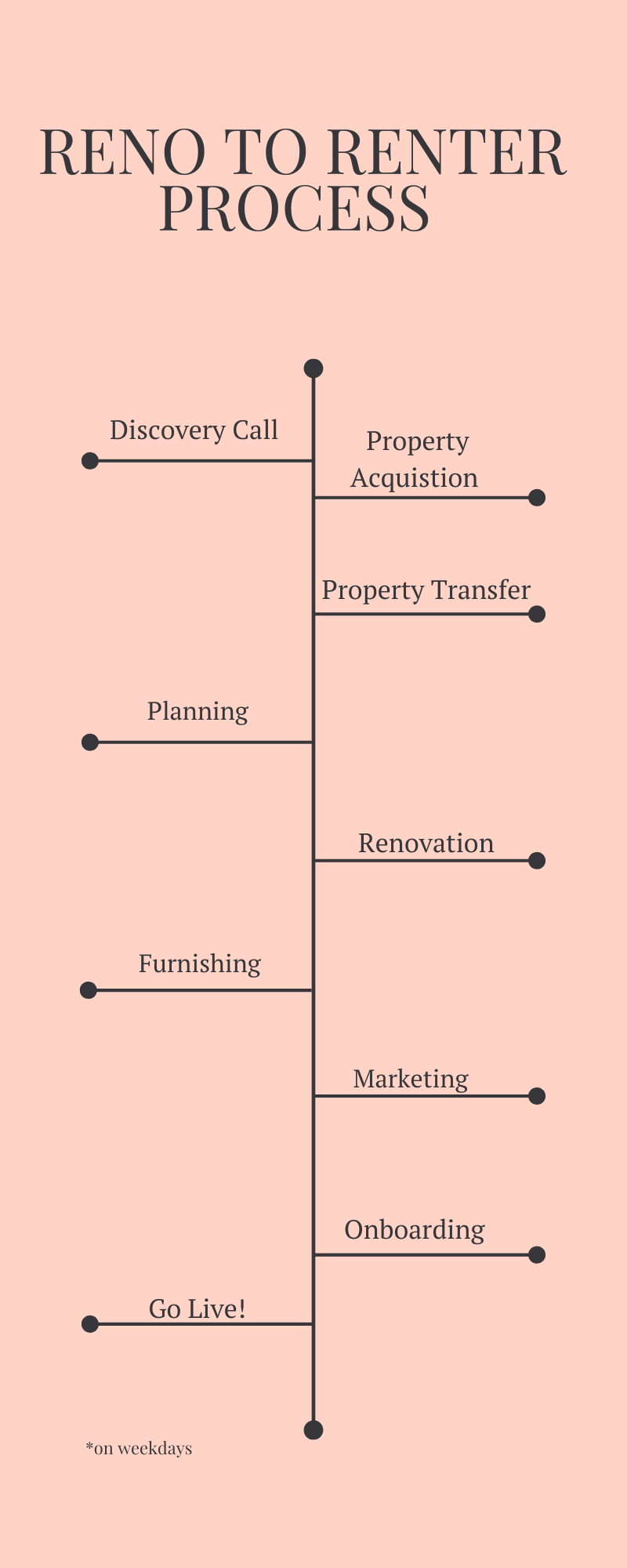 Reno to Renter – From first call to first booking, we handle it all. We start with a discovery call to understand your goals, assist with property acquisition and transfer, then create a tailored plan. Our team manages the renovation, furnishing, and marketing, followed by onboarding and going live—so your property is guest-ready and generating income without the stress.